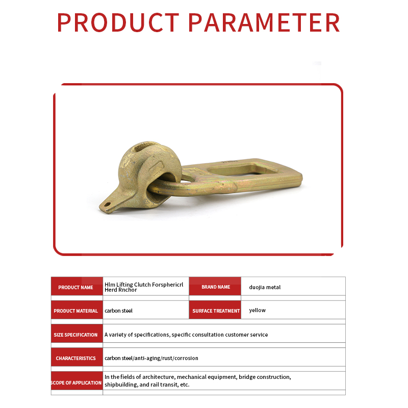 Бөмбөрцөг толгойн зангуунд зориулсан Hlm өргөх шүүрч авах нь өргөхтэй холбоотой тусгай бүрэлдэхүүн хэсэг юм. Энэ нь ихэвчлэн бат бөх металл материалаар хийгдсэн бөгөөд өргөх ажиллагааны явцад хүнд ачааг тэсвэрлэх өндөр хүч чадал, бат бөх чанарыг өгдөг.
